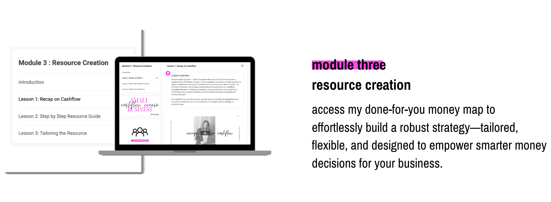 First up, the recorded lessons and resources are all available to you for immediate access. While you have full access to all the modules and resources, I designed the course with a specific flow to build your cashflow strategy step by step.
