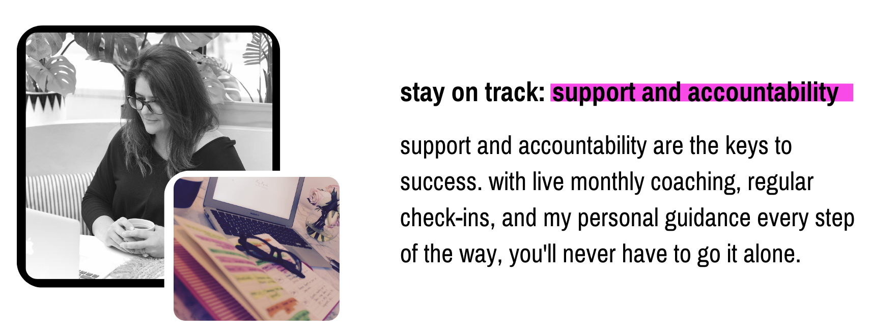 And remember—you won't go it alone! We have live coaching sessions throughout the course to offer extra support and accountability, ensuring you stay on track and succeed.